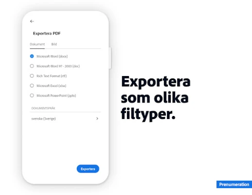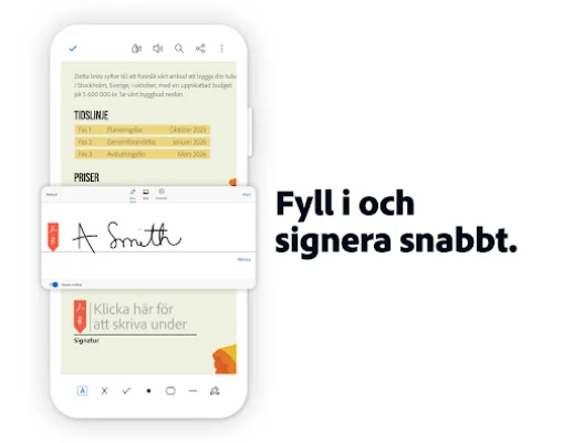 Förvandla din mobil eller surfplatta till en kraftfull dokumenthanteringscentral med Adobe Acrobat Reader. Säg adjö till fysiska formulär, utskrifter och fax. Nu, med funktioner direkt från Adobe Fill & Sign integrerade, kan du enkelt fånga en bild av ett pappersdokument, fylla i, signera och skicka det säkert – allt i ett svep. Upplev sömlös effektivitet och en helt ny frihet i din vardag. Vill du utforska den fulla potentialen? Starta din 7-dagars kostnadsfria provperiod idag och lås upp en värld av avancerade möjligheter.