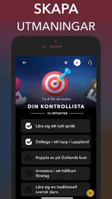 Ta första steget mot personlig utveckling och uppnå dina livsmål. Denna app erbjuder över 5000 inspirerande uppgifter som hjälper dig växa dagligen. Följ dina vanor, spåra din utveckling och förverkliga dina drömmar med en unik bucket list. Börja din resa mot ett mer meningsfullt liv idag.