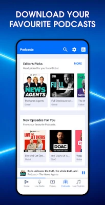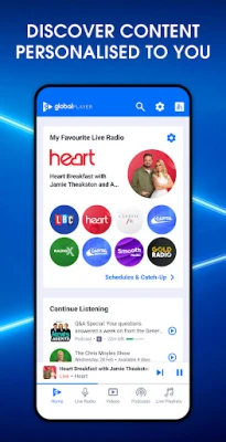 Fördjupa dig i ett enastående utbud av stationer som sträcker sig från Capitals energiska beats och Hearts feelgood-vibbar, till LBC:s insiktsfulla nyhetsbevakning och Smooths lugnande toner. Upplev Gold Radios nostalgiska pärlor, Classic FMs mästerliga kompositioner och Radio X:s alternativa sound. Utöver live-sändningarna erbjuder Global Player en rik skattkista av podcasts, inklusive prisbelönta original som The News Agents, samt populära serier som Diary of a CEO och The Rest is Politics. Här finns alltid något nytt och spännande att utforska, oavsett intresse eller humör.