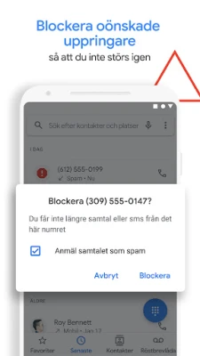 Förbättra din samtalsupplevelse med "Telefon", appen som infuserar intelligens och trygghet direkt i din handflata. Upptäck en ny era av mobil kommunikation där du aktivt undviker oönskade avbrott. Med avancerad igenkänning får du omedelbara varningar om misstänkta uppringare, vilket gör det enkelt att filtrera bort spam, telefonförsäljare och potentiella bedrägeriförsök. Du får också klarhet i vem som försöker nå dig genom omfattande företagsidentifiering, vilket ger dig lugn att svara när det verkligen är viktigt. Dessutom kan du enkelt blockera störande nummer för en permanent ostörd vardag, vilket garanterar en fridfullare digital miljö.