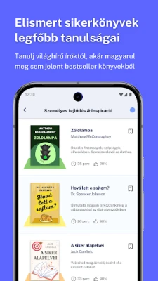 Flexibilitet är nyckeln med Napi Könyv. Tack vare möjligheten att välja mellan läs- och lyssningsformatet blir varje stund en chans till utveckling. Pendlar du till jobbet, väntar på ett möte, eller utför hushållssysslor? Använd dessa "dödtider" till din fördel. Napi Könyv anpassar sig efter din livsstil, vilket gör kontinuerlig förbättring till en sömlös del av din dag – var du än befinner dig. Utforska ett ständigt växande bibliotek av nya insikter varje vecka, för att alltid ligga steget före.