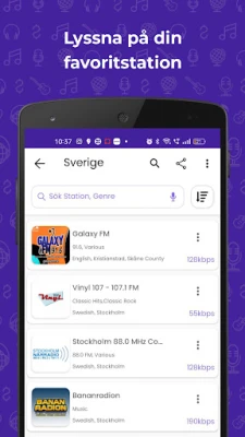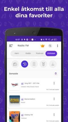 Radio FM är utformad för att göra ditt lyssnande både enkelt och personligt. Använd den smarta sömntimern för att avrunda dagen med din favoritradio, eller ställ in alarmfunktionen för att vakna till en utvald station. Skapa snabbåtkomst direkt från din startskärm, hantera dina favoritstationer och växla enkelt mellan länder, senast spelade och dina egna listor. Njut av friheten att lyssna utan hörlurar och upptäck nya program genom ett modernt och intuitivt gränssnitt som sätter dig i centrum.