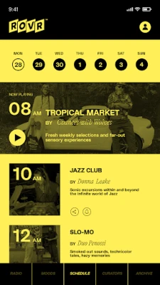 Glöm det monotona upprepandet från algoritmer; ROVR är din tillflyktsort från den digitala ekokammaren. Vår filosofi är enkel: ren, oavbruten lyssningsglädje. Det innebär inga distraherande pratinslag, inga irriterande annonser som bryter stämningen, bara ren musikupplevelse. Utforska våra ständigt aktuella "Mood"-kanaler, skapade för att matcha varje känsla och ögonblick. Och med ett omfattande arkivbibliotek till hands kan du alltid dyka djupt ner i musikhistorien eller återupptäcka bortglömda favoriter.