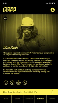ROVR gör det enkelt att hålla reda på allt du älskar. Du kan smidigt spara dina favoritlåtar, följa fängslande program och hålla koll på de kuratorer vars smak resonerar med din egen. Detta säkerställer att du alltid har tillgång till de musikaliska skatter som berikar din dag, oavsett var du befinner dig eller när lusten faller på. Upplev en djupare koppling till musikvärlden, handplockad just för dig.