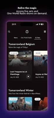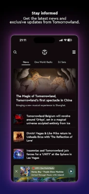 Upptäck en värld av musik och nyheter. Denna app presenterar de senaste uppdateringarna från Tomorrowland, erbjuder One World Radio och ger dig tillgång till spännande live-set på begäran. Perfekt för den hängivna musikälskaren.