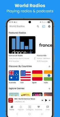 Förvandla din enhet till en portal för globala ljudupplevelser med Världsradiostationer. Föreställ dig att uppleva pulsen från Rios livfulla samba, de själfulla tonerna från en jazzklubb i Paris, eller de fängslande berättelserna från sagoberättare i Indien – allt bara ett tryck bort. Denna app suddar ut gränserna och förenar kulturer genom en oändlig symfoni av musikgenrer. Från den drivande energin i rock och reggae till den tidlösa skönheten i klassisk musik och den jordnära charmen i country, finns det alltid något nytt att upptäcka som berikar dina sinnen.